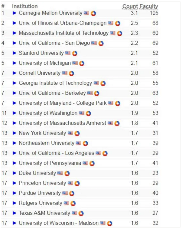 該排名以全球高校和研究機構在計算機領域的頂級學術會議上發表論文數量作為主要依據,強調學術影響力和國際活躍度,相對于傳統的排名方法更能體現出院校在CS領域的真正實力以及師資力量,因此非常有參考價值。