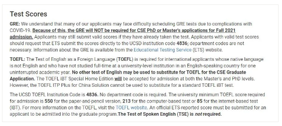3. CSE博士或2021年秋季入學的碩士申請者不需要提交GRE(如果有也可以提交,學校會受理)。