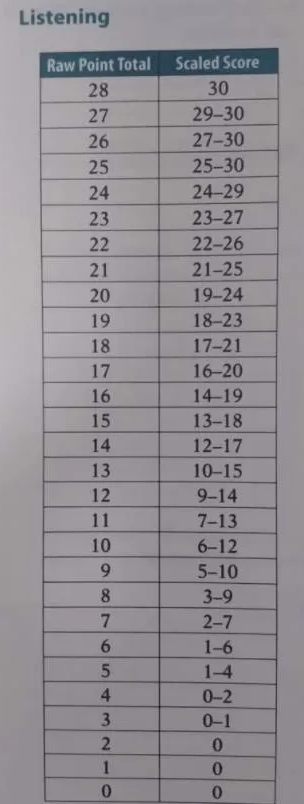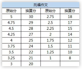 改革后口語有四道題,每一道題的分值相同。原始分為0-4分,最終換算成0-30分。