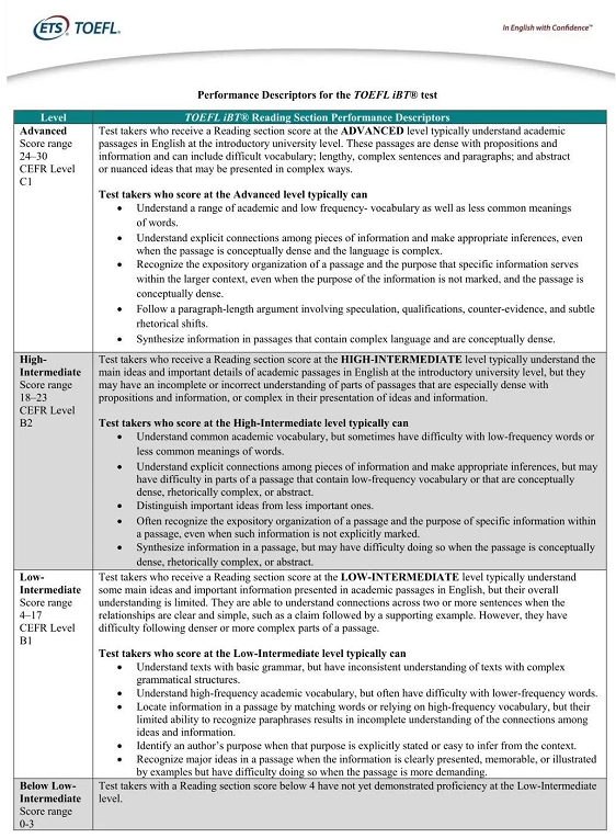 改革之后托福單項的分?jǐn)?shù)等級進行了更加精細(xì)的分化——