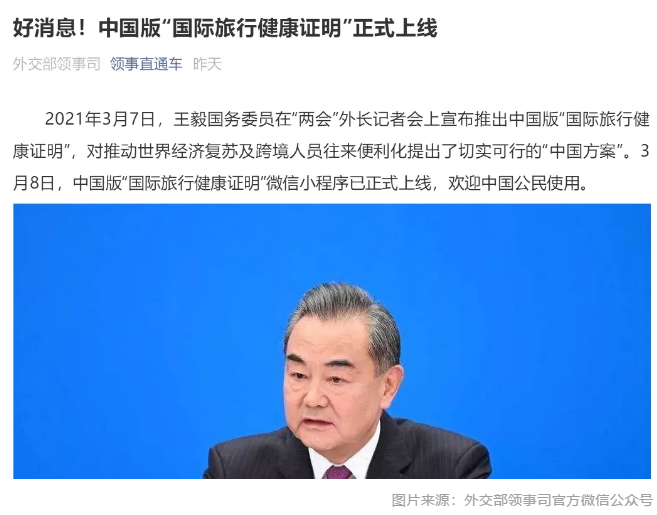 這三個消息簡單來說就是三個“推出”。第一是推出”春苗行動”,第二是推出“國際旅行健康證明”,第三是推出“中國領事”App。