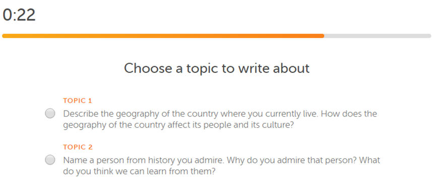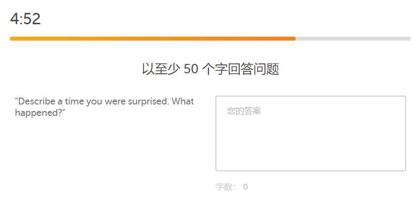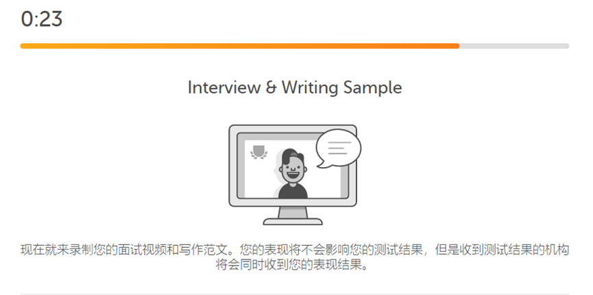 不評分部分:視頻面試和寫作樣本,測試者需要在兩個提示中選一個回答,時長約10分鐘
