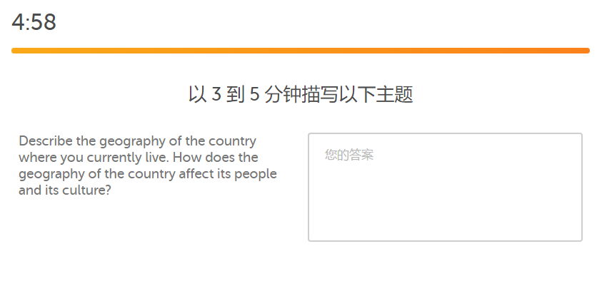9. 大口語題,題目二選一,30秒鐘選擇,還是仔細先想想有什么可說的再選;盡可能多說一些,別1分鐘就提交了,但也注意控制下收尾(建議:每個人語速不同,可以先自己錄下看3分鐘大概得說多少合適)