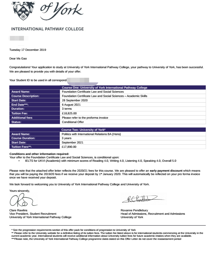 學(xué)生情況:學(xué)生讀的2+3項目,英語成績一般,覺得目前的學(xué)校和專業(yè)不是自己喜歡的,為了以后更好的發(fā)展,想去英國繼續(xù)本科專業(yè),和孩子溝通學(xué)生喜歡國際關(guān)系,并且對英國的教育是非常喜歡和認(rèn)可的,介紹了相關(guān)院校的優(yōu)勢專業(yè)以及職業(yè)發(fā)展前景,擔(dān)心學(xué)生的基礎(chǔ)比較差,后續(xù)在學(xué)習(xí)的過程中遇到挑戰(zhàn),結(jié)合學(xué)生目前的雅思推薦預(yù)科和本科,雙雙拿到錄取,后續(xù)學(xué)生根據(jù)雅思來決定自己適合的院校,學(xué)校的選擇適合自己的才是最好的。
